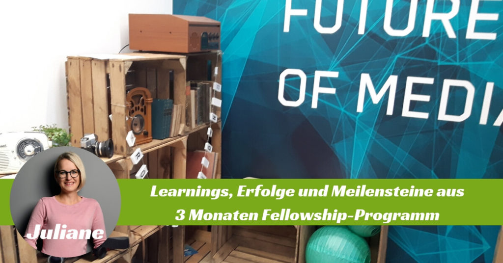 Wenn du jetzt vielleicht auch neugierig geworden bist und ein Medien-Startup gegründet hast oder da so eine Idee hast, kann das Fellowship-Programm durchaus etwas für dich sein. Da möchte ich dich ganz herzlich einladen, einfach mal zu schauen. Wir können das absolut empfehlen. Denn neben den Coachings und Rückmeldungen und Kontakten, die wir in der Medienbranche über das Media Lab Bayern bekommen, gibt es auch noch eine kleine Finanzierung: